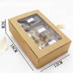 20pcs 18x12x5cm Brown Kraft Paper Box With Window Christmas Gift Box Packaging Cookie Macaron Box Candy Wedding Gifts For Guests T190709