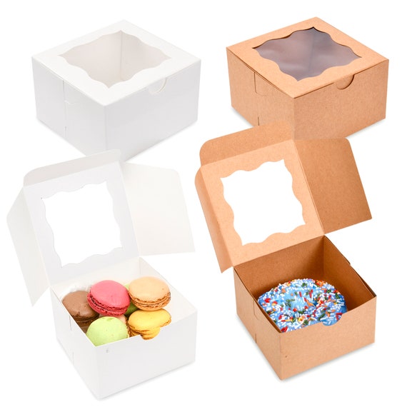 Buy white bakery box with window 4x4x25 inch 25 pack eco friendly paper board cardboard gift packaging boxes for pastries cookies small cakes pie cupcakes party favor gifts and more by lime38. Box includes a clear archival sheet glued to the inside of the cut out window. Buy 25 pack brown bakery box with window 4x4x25 inch eco friendly paper board cardboard gift packaging boxes for pastries cookies small cakes pie cupcakes and more by golden coast unlimited.