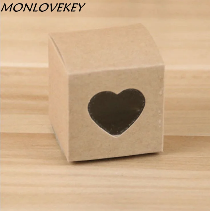5 5 5cm Mini Retro Kraft Paper Candy Box With Heart Window For Wedding Favor For Wedding Party Thanks Gift Box Mini Cupcake Box In Gift Bags