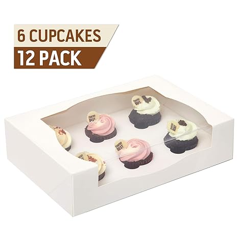 Yotruth Cupcakes Mini Boxes White 6 Slot 12 Pack 10 X 7 X 2 5 For 6 Cupcakes With Window And Insert