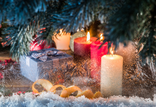 Gift Boxes Candle Lights Frozen Window Stock Photo Edit Now