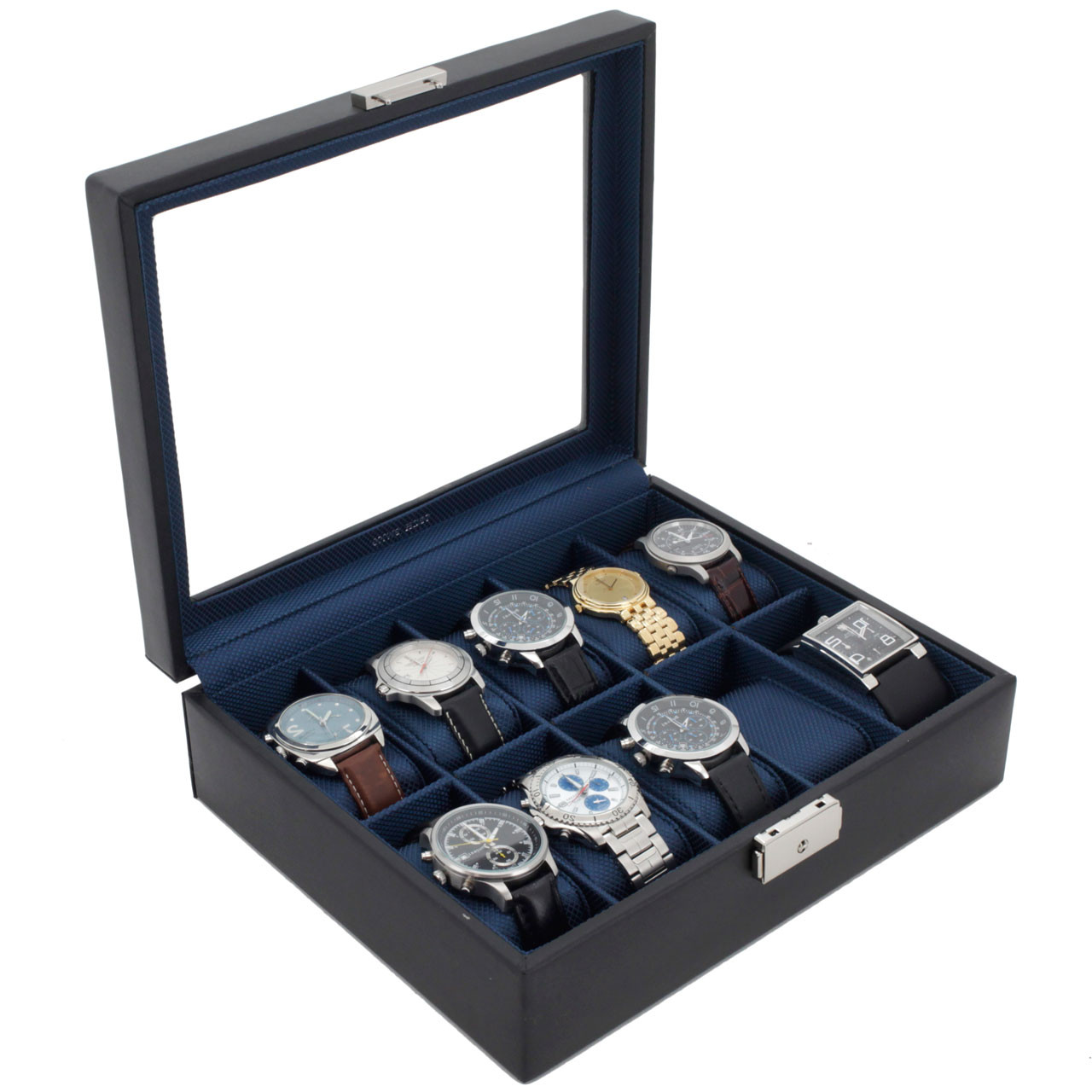 Details About Ten Watch Storage Chest With Drawer For Pens And Cufflinks And View Window