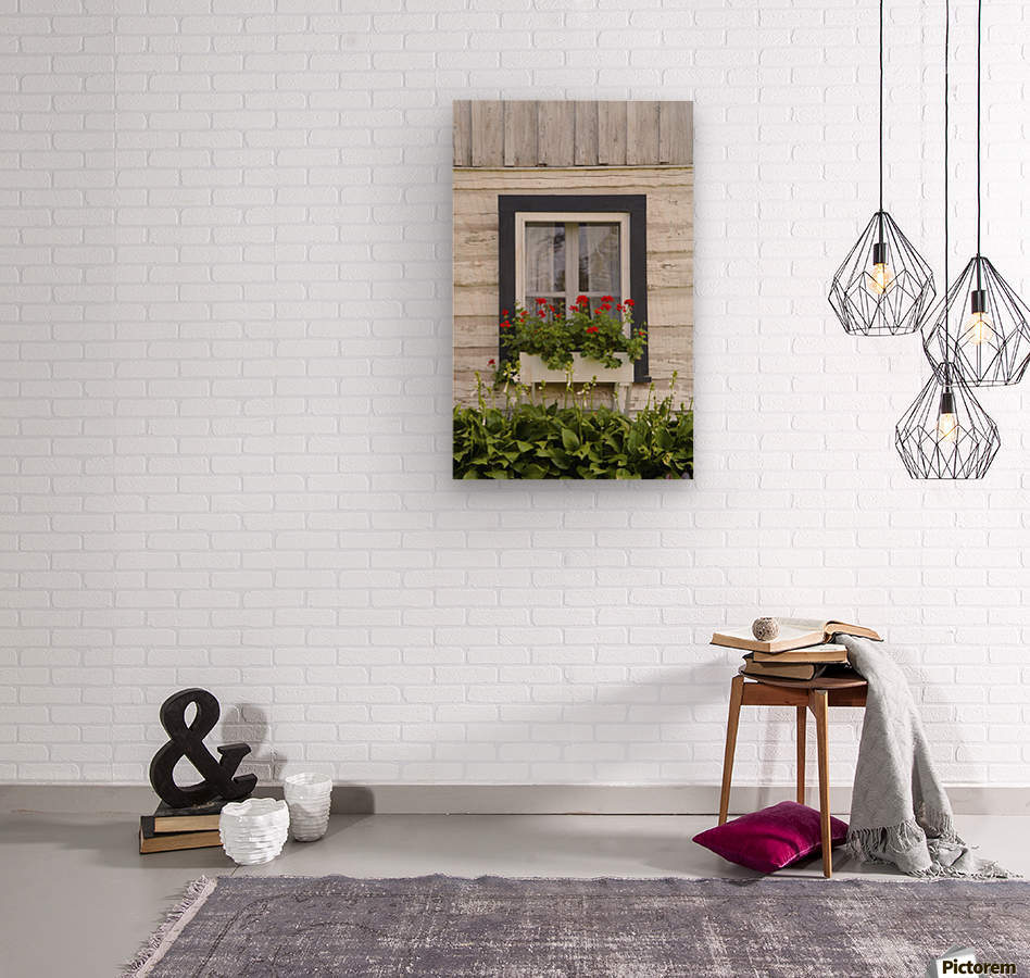 Log Home And Flower Box In The Window Iron Hill Quebec Canada Pacificstock Canvas Artwork