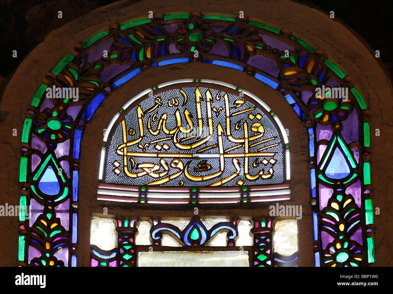 Colorful Stained Glass Windows With Arabic Inscription Apse