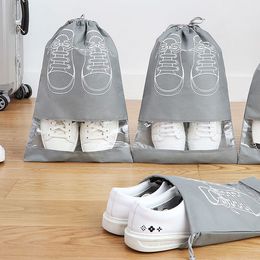 Portable Travel Shoe Bags Shoe Organizer Dust Proof Thickened Drawstring Transparent Window Space Saving Boots High Heel Storage Bags