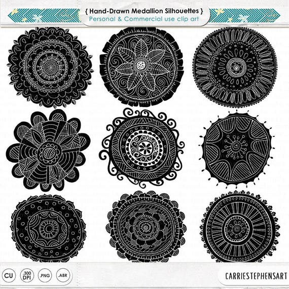 Zen Hand Drawn Medallion Clipart Circle Mandala Line Art Illustrations Circle Ornament Decoration Bohemian Doodle Clip Art Silhouette