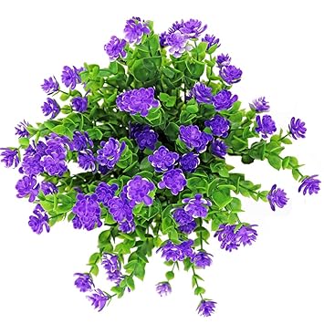 Lsme Artificial Flowers Outdoor Uv Resistant No Fade Hanging Plants For Farmhouse Window Box Decoration 4 Pcs Purple