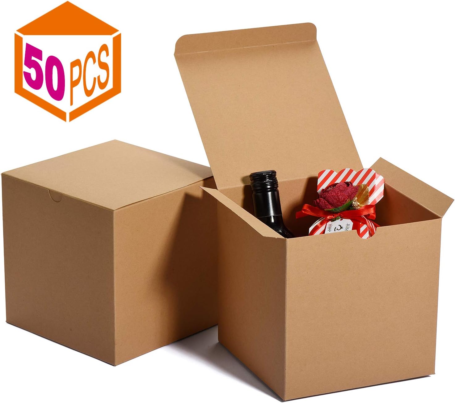 50 Pack Kraft Gift Box Wrapping Container With Lid For Party