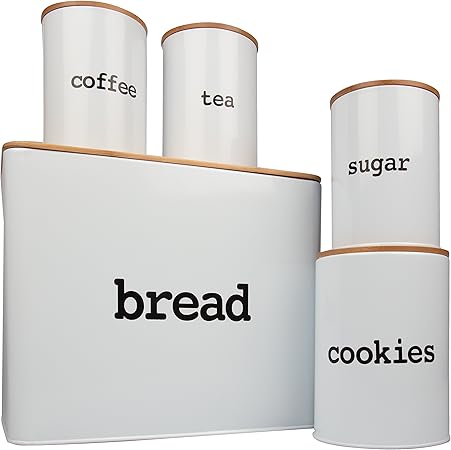 Bread Box Extra Large And 4 Piece Kitchen Canister Set W Bread Cutting Board Deluxe Food Storage Containers With Air Tight Bamboo Lids