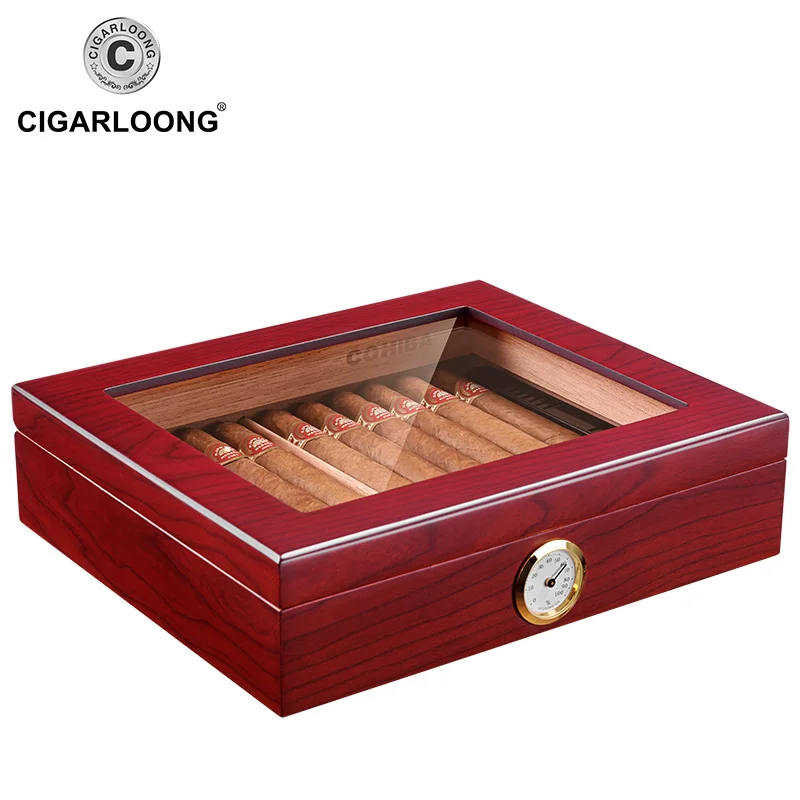 Us 189 05 5 Off Luxury See Through Glass Window High Glossy Wine Red Piano Paint Cigar Humidor Nice Storage Box With Lock Hygrometer In Cigar