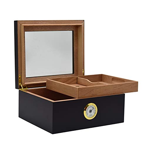 Carbon Fiber Wooden Cigar Humidor Box Glass Window Cigar