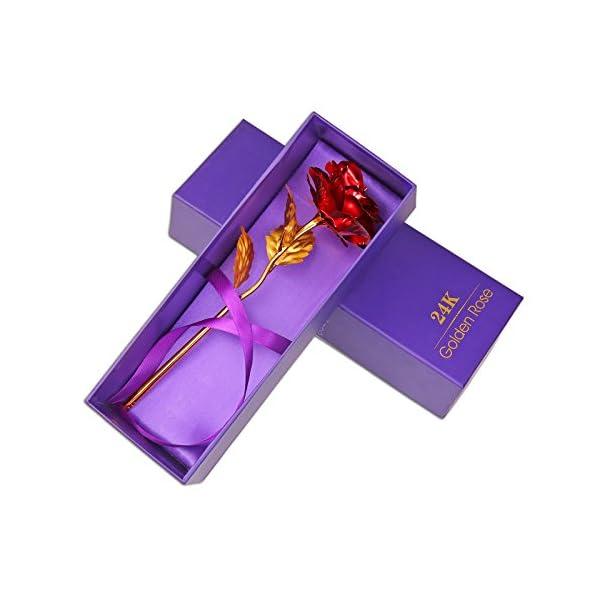Allomn 24k Golden Rose Plastic Long Stem Real Rose Dipped In Gold With Gift Box Best Red
