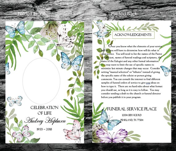 Funeral Program Template Butterfly Watercolor Greenery Memorial Program Printable Microsoft Word Order Of Service